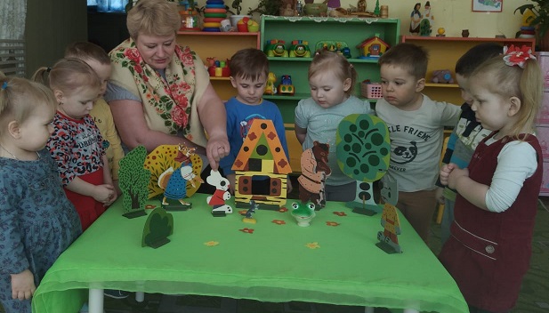 Дети первой младшей группы "Малышки" (воспитатель Морозова О.Н.) вспомнили героев сказки "Теремок", а потом сами стали артистами и инсценировали ее.