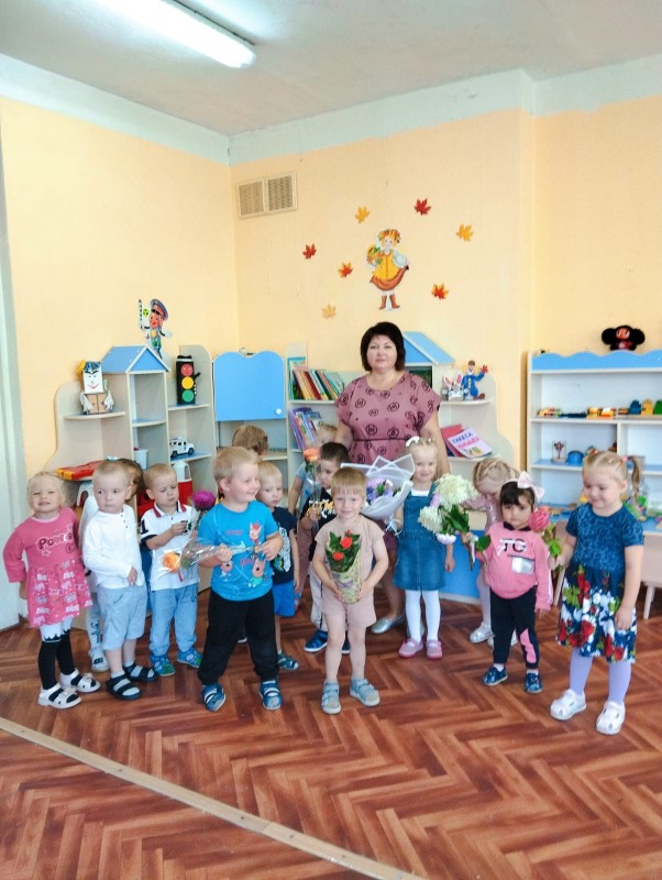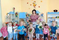 На музыкальных занятиях (музыкальный руководитель Плинкоева Надежда Николаевна дети средней группы "Почемучки", старшей группы "Непоседы", подготовительной группы "Затейники" поздравили друг друга, пожелали всем успехов. Дети старшей группы "Непоседы" (воспитатель Ананьева Галина Васильевна) прошли по детскому саду с экскурсией, вспомнили все помещения, поздравили работников и подарили осенние букеты.