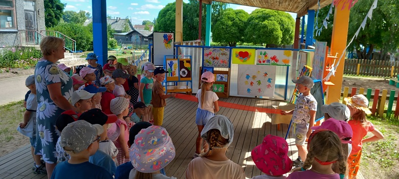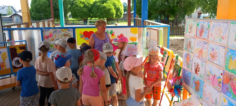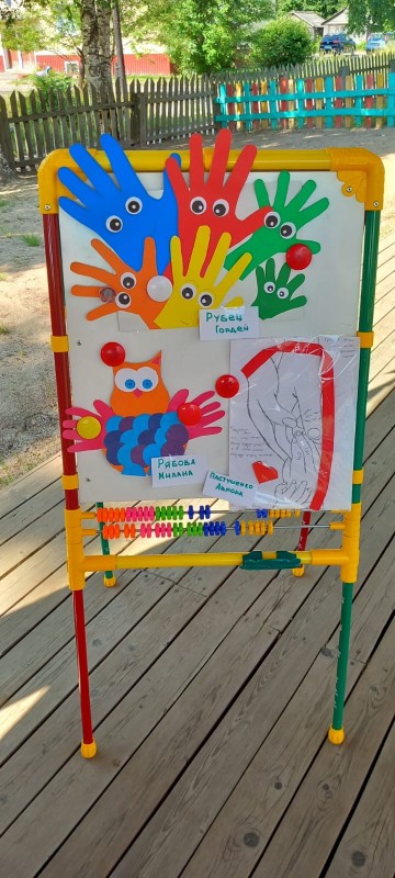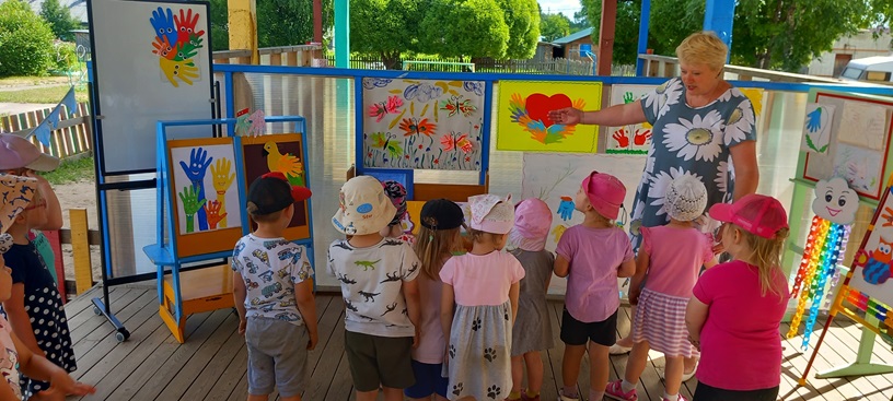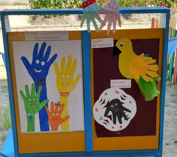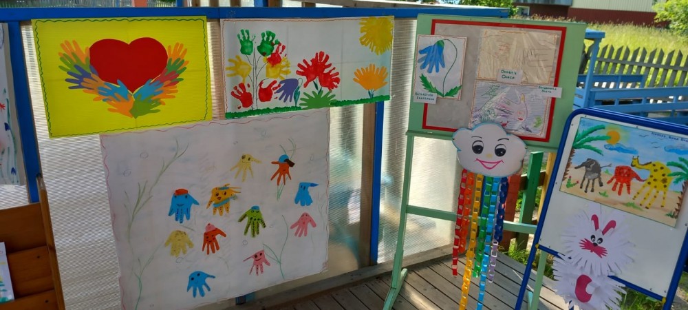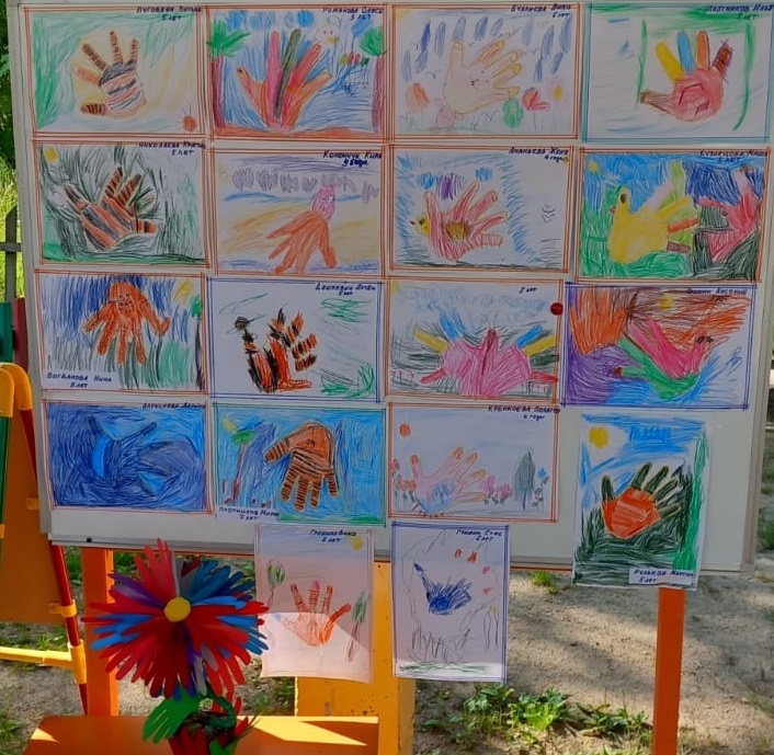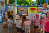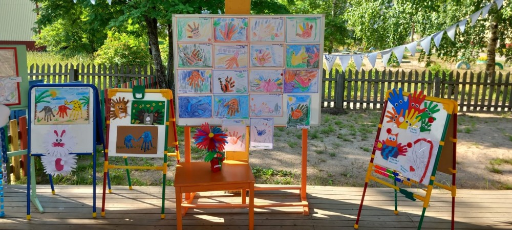 Летняя оздоровительная работа в детском саду в самом разгаре. Четвертая неделя проходит под названием "Фантазия и творчество". Теплая погода способствует проведению всей работы на прогулке. В каждой группе прошли мероприятия, направленные на развитие творческого воображения, самостоятельности, фантазии: дети рисовали на асфальте, лепили из песка, пластилина, выполняли аппликации, складывали из бумаги и выполняли много всего интересного. Ярким событием этой недели стала выставка детского творчества "Чудо-ладошки". Во всех трех зданиях родители и дети могли полюбоваться разнообразными работами - индивидуальными и коллективными, нарисованными и выполненными в технике аппликация, плоскостными и объемными. Оригинальные, удивительные, привлекательные, яркие, забавные - вот такие получились наши чудо-ладошки!