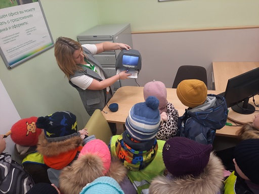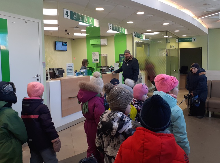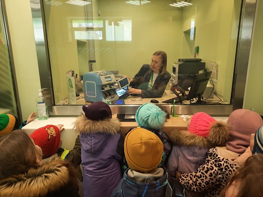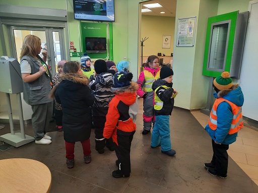 Подготовительная группа "Затейники" (воспитатель Бодян Лариса Алексеевна) посетила отделение сбербанка. Дерягина Ольга Андреевна рассказала о работе отделения. Познакомила с понятием "банковская операция" и продемонстрировала их, рассказала о безопасности карт и мошенниках. В рамках недели финансовой грамотности на экскурсии в бухгалтерию познакомились с профессией бухгалтер, его профессиональных качествах и действиях.