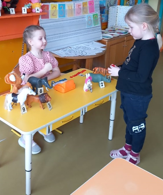 В старшей группе "Непоседы" (воспитатель Ананьева Галина Васильевна) прошло развлечение по финансовой грамотности. Дети в игровой форме отправились в магазин " Животных", где каждый купил себе игрушку-зверушку, а затем раскрашивали силуэты забавных цифр в виде зверей.