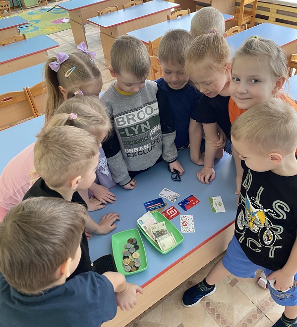С 17 марта до 21 марта в детском саду проходит Неделя финансовой грамотности. В каждой дошкольной группе проходят мероприятия, на которых дети закрепляют понятия "деньги, бюджет, банковские карты" и т.п., учатся разбираться в товарно-денежных отношениях.