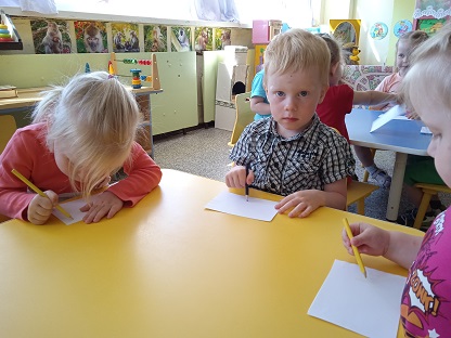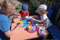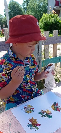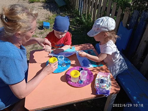 В день веселых красок малыши первой младшей младшей группы "Здоровячки" (воспитатель Блинкова Л.А.) играли в разноцветные игры и рисовали лопатками на песке. Юные художники младшей группы "Семицветик" (воспитатель Артемьева Е.Ю.) рисовали разными материалами: мелками, фломастерами, цветными ручками, акварелью, кинетическим песком, даже пластилином. Работы получились яркие, интересные. Дети и родители могли их рассмотреть на выставках, так же, как и на выставке талантов детей средней группы "Ромашка" (воспитатель Веселова А.Ю.). В нетрадиционной технике рисовали разноцветные узоры ребята старшей группы "Незабудка", используя как штамп макароны (воспитатель Тимофеева З.С.). А ребята подготовительной группы "Рябинка" (воспитатель Ригоева Л.Н.) рисовали сделанными самостоятельно штампами из пакетов, поролона, пробок. Весело играли в народную игру "Краски". Беседовали на тему "Что такое талант". Дома дети с родителями сделали солнышки и перечислили умения детей. А Волнухин Костя показал друзьям свою выставку творческих работ. А в старшей группе "Семицветик" Сысоев Ваня научился читать и прочитал ребятам отрывок из сказки, Нюппиева НАдя и Горохова Арина спели свои любимые песни.
