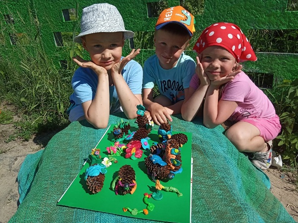 В день лепки малыши первой младшей группы "Здоровячки" (воспитатель Ананьева Г.В.) лепили ласковое летнее солнышко. Получились яркие красивые картинки. Малыши групп "Одуванчик" и "Малинка" (воспитатели Феклистова В.В., Чирикова А.Г.) лепили "Волшебные шарики". Дети второй младшей группы "Крепыши" (воспитатель Блинкова Л.А.) знакомились с игрушками прежнего времени из разных материалов. Познакомились с тряпичными куклами, филимоновскими и дымковскими игрушками из глины. Сами ребята попробовали свои силы в лепке из пластилина и песка. Малыши группы "Семицветик" с воспитателем Артемьевой Е.Ю. учились создавать объемные поделки методом "пластилинового конструктора". Дети старшей группы "Непоседы" (воспитатель Лазаренко Е.А.) лепили сказочных героев. Ребята старшей группы "Василек" выполнили налепом "Летний натюрморт" (воспитатель Тихонова А.Г.).