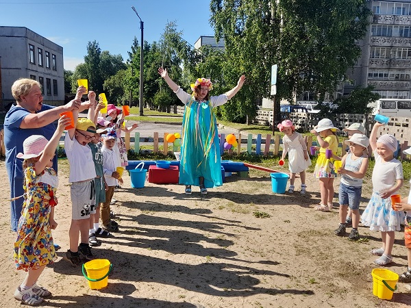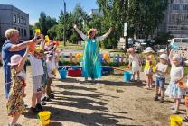 Итоговым мероприятием недели стали веселые праздничные программы. Для детей дошкольных групп "Крепыши", "Почемучки", "Непоседы", "Затейники" (воспитатели Корнышева Т.В., Богданова А.А., Андреева А.А., Бодян Л.А.) прошел замечательный концерт "У каждого есть свой талант". Дети читали стихи, исполняли песни, танцевали, играли, шутили. В завершении программы дети подготовительной группы провели флеш-моб "Мы умеем танцевать!". На развлечение "Лето, солнце и вода" музыкальный руководитель Шлыкова М.В. пригласила ребят старших групп "Василек", "Незабудка", подготовительных групп "Рябинка", "Березка" (воспитатели Горячева А.А., Генкель С.Ю., Ригоева Л.Н., Борисова И.В.). Главная гостья праздника хозяйка Лето (Арефьева Е.В.) загадала загадки, предложила рассказать летние стихи, спеть любимые песни. Организовала игры-эстафеты с водой, хороводы. Все весело танцевали на летней дискотеке "Лето - это праздник!".