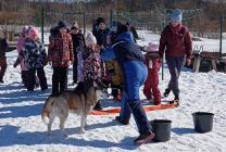 Встречали нас гостеприимные Елена и Павел, а также милые, голубоглазые, добрые собаки породы хаски. В программе была познавательная экскурсия, игры различного характера, выставка поделок, были сюрпризы и подарки детям.