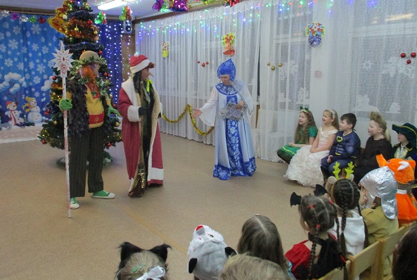 Новогодняя сказка прошла в каждом здании детского сада. Дети групп "Почемучки", "Ромашка", "Рябинка", "Затейники" (ул. Володарского, 39) встретились в сказке с Бабой Ягой, Лешим, Нехочухой, Зимушкой и дедом Морозом. Яркие стихотворения, дружные хороводы, игры со снежками, танцы девочек и мальчиков порадовали детей и гостей.