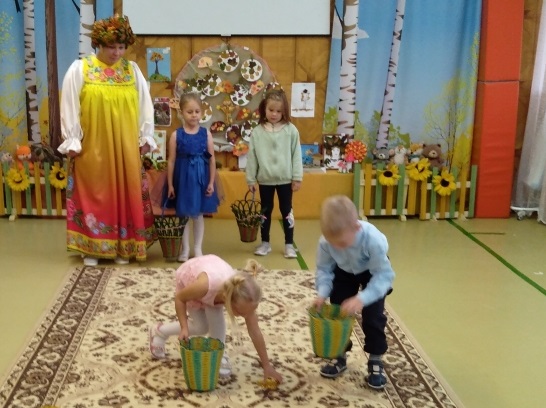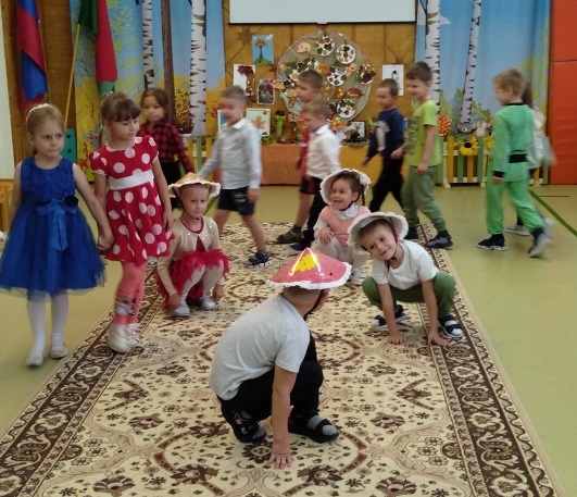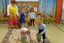 Золотая осень в самом разгаре - листопад, разноцветные листья, сочные ягоды, разноцветные грибы, богатый урожай овощей и фруктов. О всех приметах осени наши воспитанники вспомнила на веселых осенних праздниках и открыли выставку семейного творчества "Осень, осень, в гости просим!" (музыкальный руководитель Плинкоева Н.Н.). Красавица-осень (воспитатели Богданова А.А., Блинкова Л.А.) принесла детям чудесную корзину с листьями, но необычными, а заданиями: дети сортировали листья от разных деревьев, собирали овощи и фрукты, отгадывали загадки, танцевали, играли. Веселый Пугало Огородное (Воспитатель Бодян Л.А.) и запасливая Хозяйка (воспитатель Морозова О.Н.) предлагали детям веселые аттракционы.