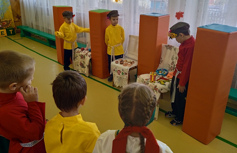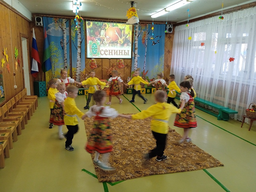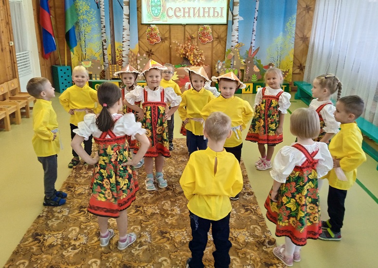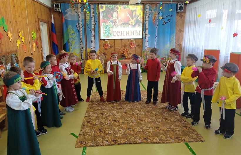 Воспитанники групп «Непоседы» и «Затейники» побывали сегодня на веселых, ярких, задорных посиделках, посвященных Осени. "Здравствуйте, люди добрые! Милости просим на наш праздник,"- эти словами ведущие (воспитатели Л.А.Блинкова, Т.В.Корнышева, Н.Н.Плинкоева) пригласили детей на игровые программы. Песни о красавице Осени, народные игры, веселые хороводы - все было на празднике. Не только веселились и играли, но и узнали много нового про народные праздники. Нарядные костюмы, музыкальные инструменты, народная утварь-помогли создать праздничную атмосферу.