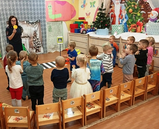 Игровое занятие «Осторожно, дорога!» по безопасности дорожного движения прошло во второй младшей группе «Гномики» (ул. Красноармейская, 26 – воспитатель Яковлева Евгения Геннадьевна) под руководством инспектора по пропаганде БДД Госавтоинспекции Олонецкого района Осиповой Любовь Сергеевны. Дети повторили, как правильно переходить дорогу по пешеходному переходу. Инспектор рекомендовала использовать световозвращающие элементы в зимнее время для безопасности на дороге, когда световой день сокращается, и водителям труднее заметить пешеходов. Любовь Сергеевна напомнила детям сигналы светофора и провела игру «Будь внимателен. Дети повторили дорожные знаки, рассмотрели картинки с различными ситуациями на дорогах и сделали вывод, что играть возле дороги опасно!
