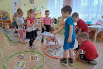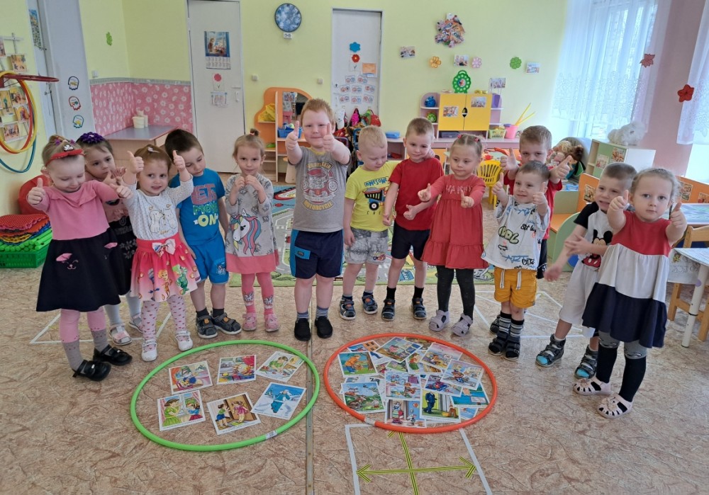 Дети средней группы «Ягодки» (воспитатель Кормоева Екатерина Владимировна) в интересной и захватывающей игре закрепили правила дорожного движения.