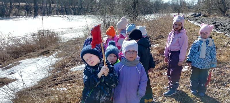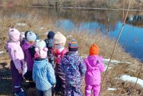 В целях повышения безопасности детей в период весеннего половодья и предупреждению возникновения несчастных случаев на водных объектах в весенний период дети подготовительной группы совершили целевую прогулку к рекам Мегрега и Олонка. Закрепили знания о весеннем половодье, опасности в воды. Наблюдали ,как прибывает вода весной в реках из-за таяния снега и льда.
