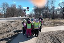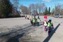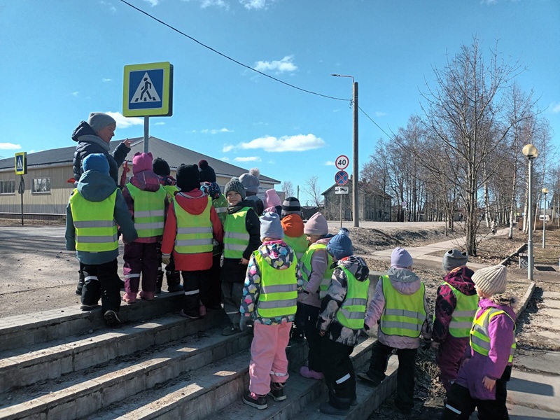 "Вежливый пешеход"-под таким названием прошла экскурсия в подготовительной группе "Затейники". Дети под руководством воспитателя Бодян Ларисы Алексеевны определяли направление машин, пешеходов. Вспомнили, что такое обочина, тротуар и как по ним необходимо передвигаться. Закрепили знания правил безопасного перехода через дорогу. Называли знакомые знаки.
