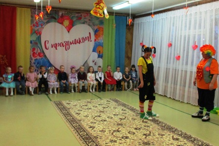 Дети средней группы "Почемучки" (воспитатель Бодян Л.А., инструктор по физической культуре Андреева М.И., музыкальный руководитель Плинкоева Н.Н.) побывали на веселом и позитивном празднике вместе с клоуном Бомом и его подружкой Ириской. Дети угадывали, что спрятано у клоуна в чемодане сюрпризов, исполняли песни и красивые ритмические композиции.