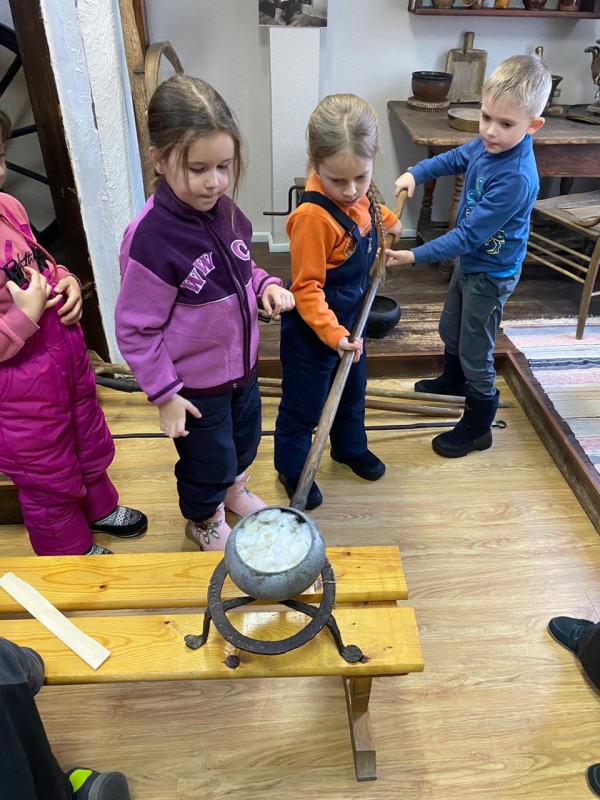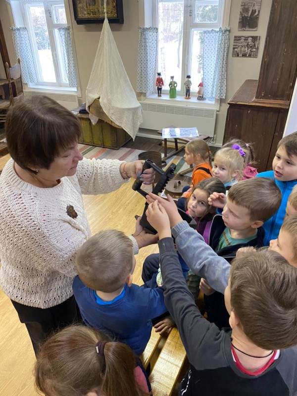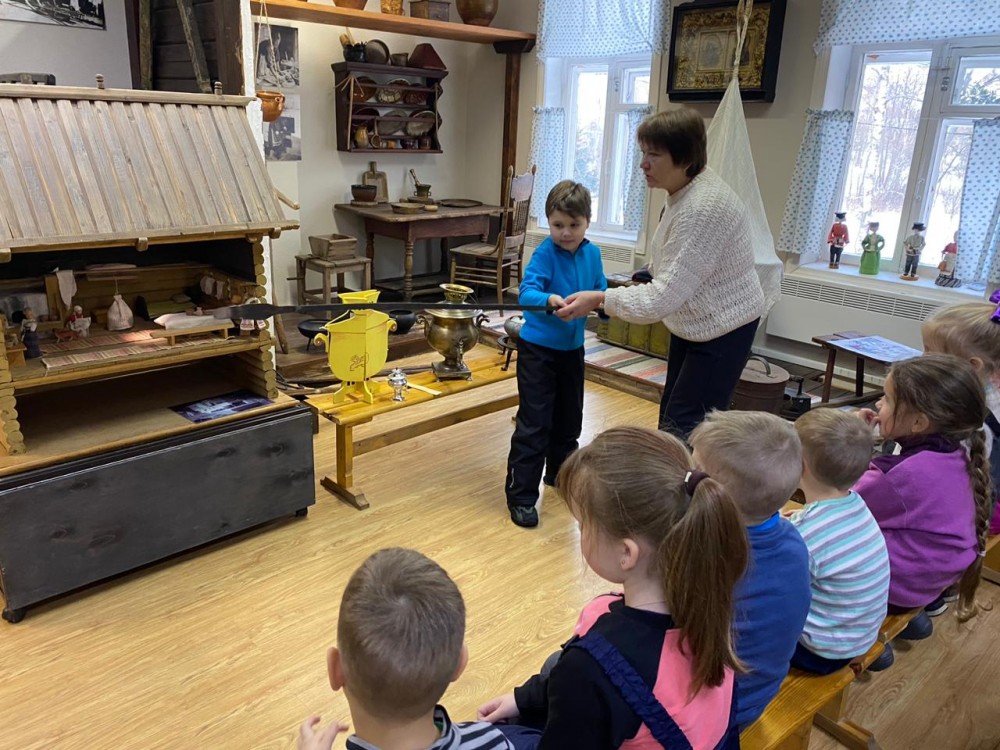 Сегодня дети подготовительных групп «Рябинка» и "Затейники" (воспитатели Зайцева Е.И., Богданова А.А., помощники воспитателей Рямякова О.М., Федорова О.А.) посетили музей по образовательной программе «Дом и что в нем». Группа "Затейники" узнали все про русскую печь, которую ласково называли в старину "Печь-хозяюшка", рассказала им обо всех хитростях печи Туттурева Людмила Васильевна. Воспитанники группы "Рябинка" с экскурсоводом Еленой Николаевной Скобкиной закрепили материал занятия «Печь-хозяюшка» и учились сервировать стол ,как это делала хозяйка в старину, выбирали хозяина и хозяйку дома.Узнали правила сервировки, поочередность посадки за стол, какие предметы посуды ставили на стол в первую очередь.