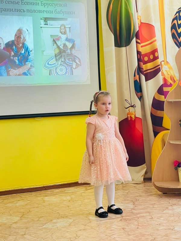В ходе проекта прошли несколько встреч для родителей, совместные мероприятия для детей и родителей, но кульминационным моментом стали заключительные праздники, на которых дети с помощью своих родителей, сестер, воспитателей рассказали о семейных реликвиях, предметах, которые хранятся в каждой семье, передаются от мамы к дочери, от бабушки внуку и так далее. Яркие, интересные, непохожие друг на друга рассказы у нас получились. Мы узнали истории о семейных альбомах, шкатулках, зеркале, музыкальных инструментах, национальном головном уборе и многом другом.