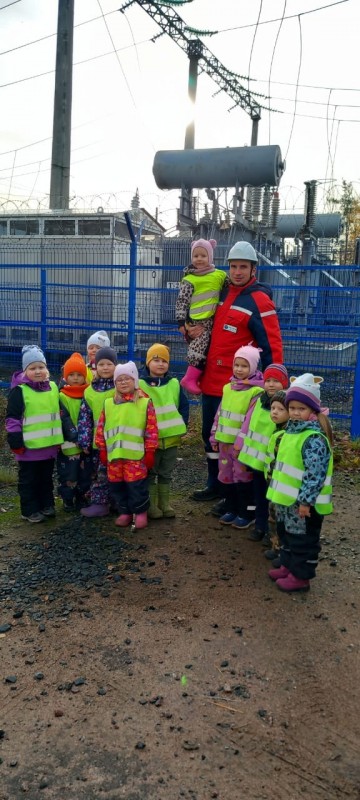 В рамках проекта "Профессии наших родителей" дети старшей группы "Непоседы" (воспитатель Ананьева Галина Васильевна) побывали на экскурсии у энергетиков, на подстанции филиала "Россети Северо-Запад". Ребята проявили живой интерес к окружающему: -Что за синие штучки? Почему гудит? Что обозначает знак со стрелой? На все свои вопросы они получили конкретные, исчерпывающие ответы, за что спасибо диспетчеру подстанции Владимиру Юрьевичу Буллиеву, папе Виктории Буллиевой. Владимир Юрьевич охотно вошёл в роль экскурсовода, рассказал, что одет на работе в защитный костюм, носит каску и специальную обувь. Дети узнали, что от труда энергетиков зависит стабильная работа детских садов, больниц, школ, а также надёжное электроснабжение населения. Очень важной была информация о предотвращении детского травматизма.