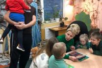 Всех гостей радушно встретили в "Карельском лесу", где дети стали участниками игрового занятия: слушали, угадывали птиц и животных по голосу, находили их на картинках. В гости к детям пришли медведица с медвежонком, ребята слушали сказку, вспомнили, как нужно вести себя в лесу, помогли медвежонку убрать мусор. А ещё ребята посетили "Живой уголок", где увидели разных домашних питомцев. Ребята их кормили, гладили, слушали голоса птиц (петух, гусь).