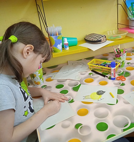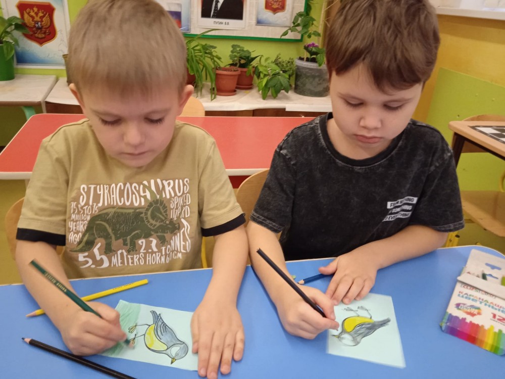 Дети старшей группы "Непоседы" (воспитатель Блинкова Л.А.) встретили "гостью" у себя в группе, нарисовали портреты синички, узнали о ней много нового.