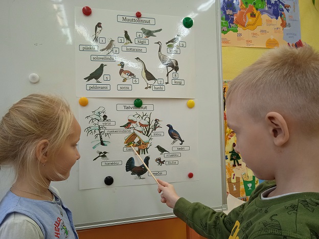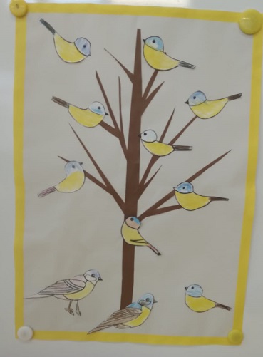 В средней группе "Семицветик" (воспитатель Лекандер С.А.) дети отгадывали загадки, играли в подвижные и дидактические игры "Что за птица", "Прилетели птицы", раскрашенные руками детей синички украсили группу.