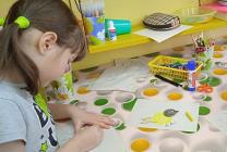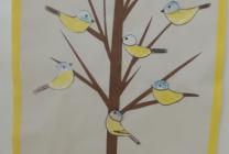 Во второй младшей группе "Крепыши" (воспитатель Морозова О.Н.) дети выполнили коллективную работу "Синички на ветках".