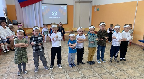 День защитника Отечества - это праздник воинской доблести, чести, праздник наших пап, дедушек, братьев. В детском прошли торжественные мероприятия, посвященные такому важному празднику для нашей страны. Совместно с папами и дедушками ребята состязались в ловкости, быстроте, смекалке. Исполняли песни об Армии, танцевали, и, конечно, выразительно читали стихи. На таких мероприятиях у детей воспитывается чувство гордости за Российскую Армию, желание быть похожими на сильных, смелых и находчивых защитников Отечества. А ну, мальчишки, мальчишки ребятишки, будущее Армии страны . Бравые солдатики, сыновья и братики Родине служить должны! Замечательные утренники провели музыкальные руководители Дмитриева Ирина Борисовна, Иванова-Плинкоева Зинаида Николаевна, Кошкина Любовь Ивановна, Плинкоева Надежда Николаевна и воспитатели дошкольных групп..