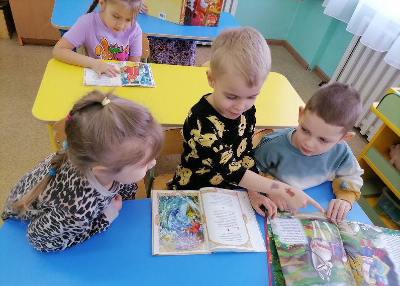 Воспитанники старшей группы окунулись в мир пушкинских сказок. Ребята вспомнили любимые сказки автора: «Сказка о золотом петушке», «Сказка о царе Салтане…», «Сказка о мёртвой царевне и о семи богатырях», «Сказка о попе и о работнике его Балде», «Сказка о рыбаке и рыбке».