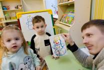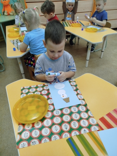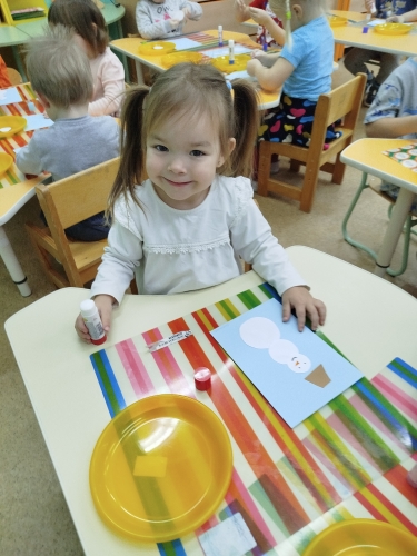 В первой младшей группе "Одуванчик" (ул. Красноармейская, 26А) прошло замечательное развлечение и мастер-класс " Весëлый снеговик". Дети с родителями под руководством воспитателя Борисовой Ирины Викторовны смазывали контур рисунка клеем, посыпали солью и раскрашивали акварелью.