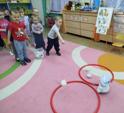 Во второй младшей группе "Колокольчик" (ул. Урицкого, 30А)с воспитателем Кекшоевой Тамарой Ивановной ребята поздравляли Снеговика с праздником: рассказали о зимних забавах, водили хоровод, играли в снежки, прятались в сугробе, катали снеговиков на санках. Малыши смастерили для Снеговика много друзей. А на прогулке слепили снеговика из снега.