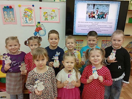 Ребята подготовительной группы «Затейники» (ул. Володарского, 39) под руководством воспитателя Блинковой Людмилы Александровны узнали, что день рождения снеговика в январе проводится 2 раза: 9 января по сказочному календарю, 18 января - Международный день снеговика и 28 февраля отмечается День снеговика в России! Дети также узнали, зачем в прошлые столетия лепили снеговиков, как в разных странах и сейчас лепят снеговиков. Познакомились с интересными фактами про снеговиков: где был построен самый большой снеговик и каких размеров самый маленький снеговик. А еще мальчишки и девчонки теперь знают, что когда лепишь снеговика, ему можно загадать свое желание и когда он растает, то желание обязательно сбудется!