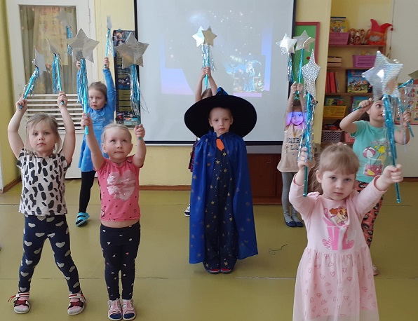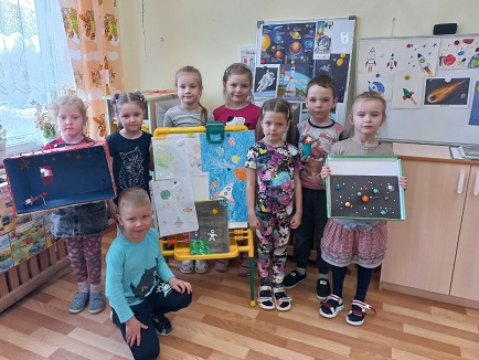 В средней группе "Берёзка" (воспитатель Артемьева Е.Ю.) прошел мастер-класс "Ракета", также дети составляли небесные звезды из разных материалов - счетных палочек и цветных пуговиц, на музыкальном занятии (музыкальный руководитель иванова-Плинкоева З.Н.) смотрели мультфильм "Моя планета".