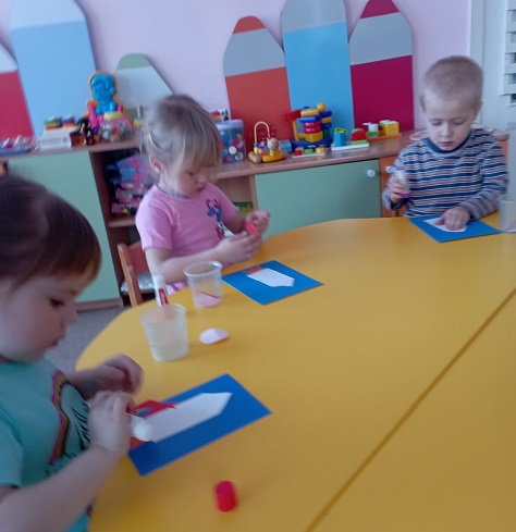 Во второй младшей группе "Крепыши" (воспитатель Ананьева Г.В.) прошла беседа и лепка ракеты.