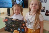 Дети подготовительной группы "Незабудка" (воспитатель Генкель С.Ю.) познакомились с планетами солнечной системы с помощью плаката, вспомнили имя первого космонавта Земли и конструкторов космических аппаратов.