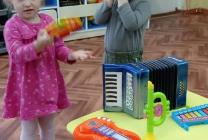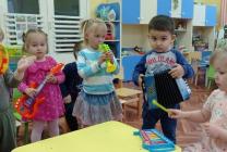 Дети второй младшей группы "Семицветик" (воспитатель Ригоева Л.Н.) играли в игру "Угадай, что звучит", создали свой музыкальный оркестр. Малыши средней группы "Почемучки" (воспитатель Блинкова Л.А.) говорили об осени, ее красоте и о том, что у осени есть своя мелодия. Дети слушали шум осеннего леса, красивые осенние мелодии и попробовали себя в роли музыкантов. У мальчишек и девчонок получилась красивая мелодия осени. Дети подготовительной группы "Фиалка" (воспитатель Лекандер С.А.) познакомились с творчеством известного советского и российского композитора В.Я. Шаинского, слушали его песни и угадывали мультфильмы. А ребята в подготовительной группе "Незабудка" с воспитателем Генкель С.Ю. начали день с задорной гимнастики под музыку с султанчиками. Познакомились с патефоном, который принес Василий Александрович, дедушка Арины: слушали старинные песни, даже танцевали под мелодии наших прабабушек.