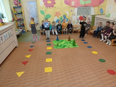 Дети первой младшей группы "Карамельки" с царицей Математики (воспитатель Бодян Лариса Алексеевна), вспомнили знакомые геометрические фигуры: собирали их из частей, из палочек, искали предметы похожие на фигуры. Математика это увлекательно.