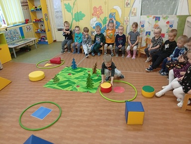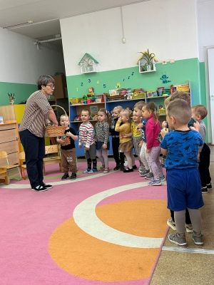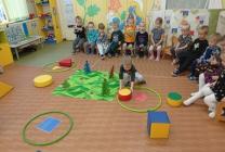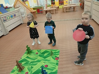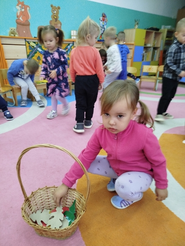 На математическом занятии ребята второй младшей группы "Колокольчик" вместе с воспитателем Кекшоевой Тамарой Ивановной помогали заблудившемуся ёжику добраться до леса. Добавили паровозику колеса, рассказали какой они формы и сколько их, и отправились в путь. На лесной полянке набрали осенних листочков и привезли их в детский сад.