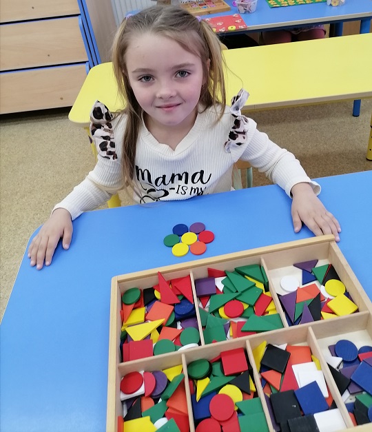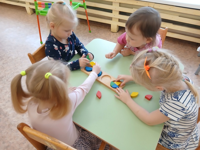 Во второй младшей группе "Гномики"(воспитатель Яковлева Евгения Геннадьевна) на занятии дети закрепляли названия геометрических фигур, сортировали их по форме, определяли по величине, выкладывали фигуры с помощью крышечек, развивая мелкую моторику. Дети с удовольствием играли в дидактические игры " Найди такую же фигуру", "Найди свою дорожку", "Разложи фигуры правильно".