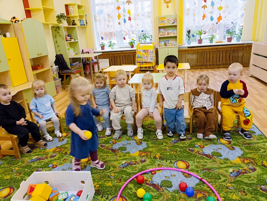 Малыши первой младшей группы "Одуванчик" с воспитателем Борисовой Ириной Викторовной знакомились с формой "шар". Учились называть и производить действия: катать, обводить, бросать.