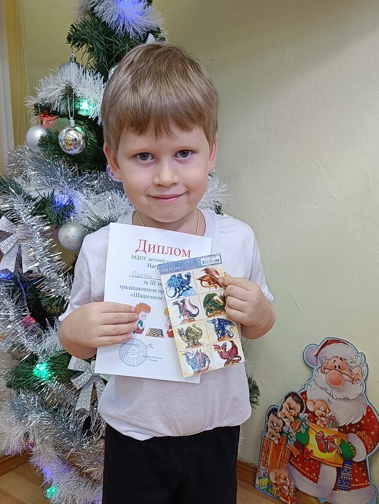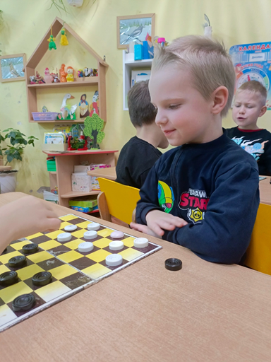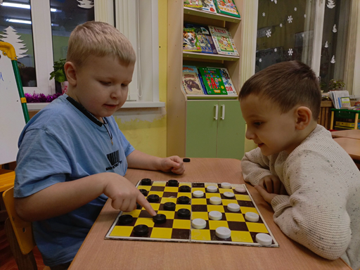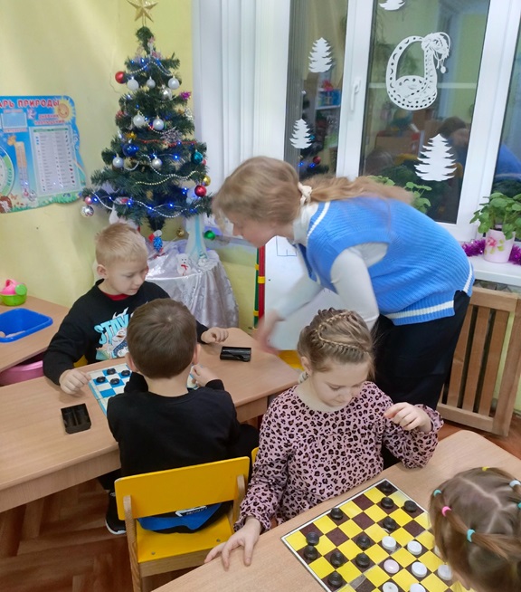 В старшей группе "Семицветик" (воспитатель Лекандер Светлана Александровна) в течении недели проходил предновогодний "Шашечный турнир". Основная цель: формирование у детей старшего дошкольного возраста интерес к игре в русские шашки, активизация мыслительной деятельности детей, тренировки логическое мышление и памяти, находчивость и смекалку. Развивать чувство ответственности, воспитывать спокойствие и уверенность в своих силах, умение достойно выигрывать и проигрывать с достоинством.