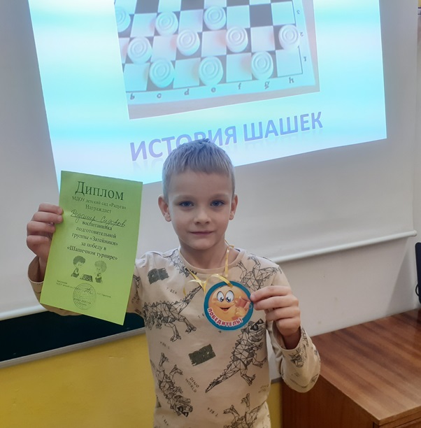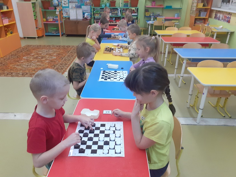 "Шашечные турниры" прошли и в подготовительных группах "Березка", "Затейники", "Лучики" (педагоги Бодян Лариса Алексеевна, Карпова Валентина Александровна).. В группе "Березка" его провела студента педагогического колледжа Каноева Дарья.