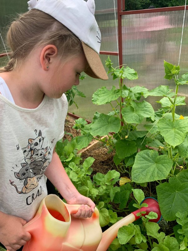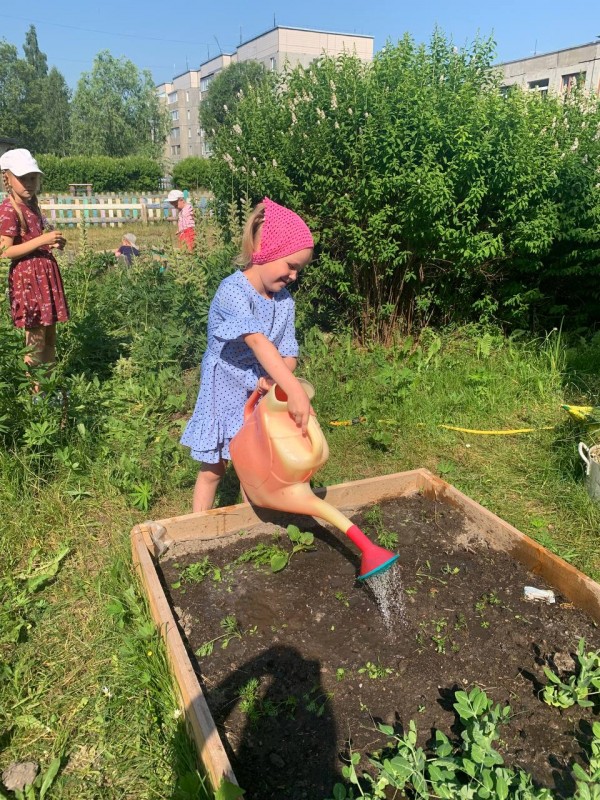 На участке детского сада (ул. Школьная, д.23А) имеется не только огород с овощными культурами , но и теплица. Первый урожай уже сняли и оценили малыши второй младшей группы (воспитатель Коваленко Жанна Сергеевна). Но чтобы овощные культуры радовали своими плодами необходим постоянный уход. Каждую неделю дети разных возрастных групп ухаживают за растениями. С 24 июня по 28 июня группа "Рябинка" (воспитатель Зайцева Елена Ивановна) была ответственна за огород и теплицу детского сада. Дети научились правильно ухаживать за растениями, поливать по мере необходимости, полоть и разрыхлять почту. В некоторых случаях использовались такие формы работы, как индивидуальные поручения. В течение недели дети видели каким растениям нужен дополнительный полив. Трудовое воспитание необходимо для детей дошкольного возраста, так как дети приучаются замечать и ценить результаты труда.