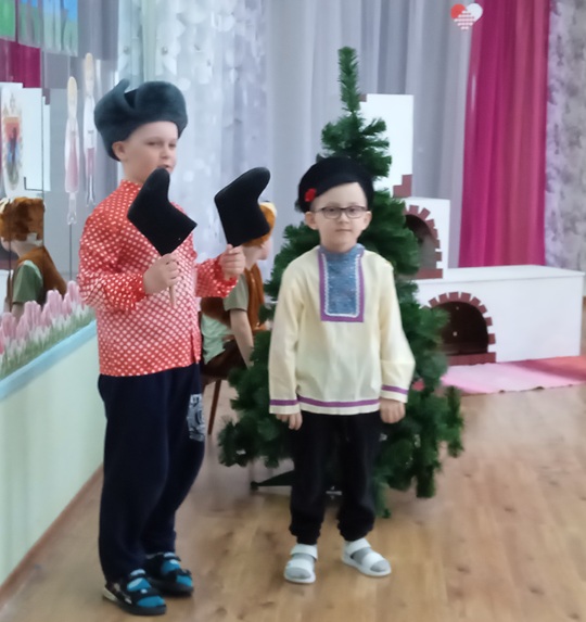 Дети подготовительной группы «Берёзка» (музыкальный руководитель Плинкоева Надежда Николаевна) стали артистами, показали сказки про «Красную Шапочку на новый лад» и «Валеночки». Зрители не ожидали доброго и вежливого волка, а валеночки гуляли, гуляли, да дедушке Трифону вернулись.