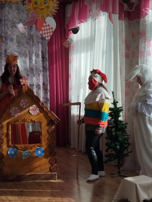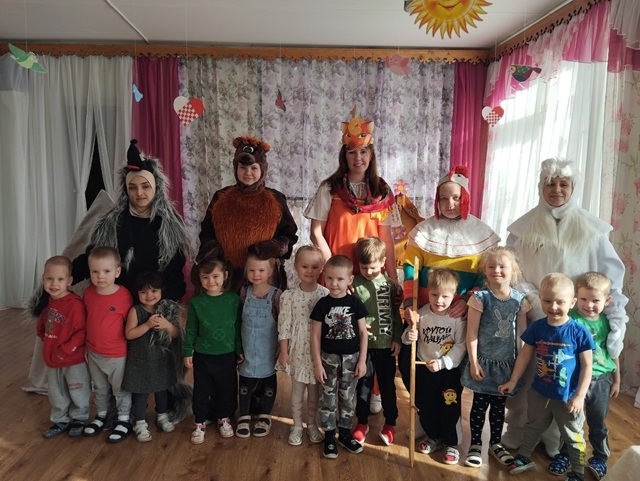 Мамы второй младшей группы "Семицветик" (воспитатель Горячева Анжела Анатольевна) перевоплотились в образы героев русской народной сказки "Лиса, заяц и петух". Дети с большим интересом наблюдали за развитием сюжета сказки и игрой мам - "актёров". В благодарность всем актёрам зрители подарили аплодисменты.