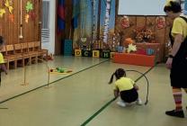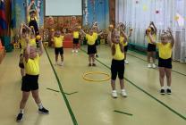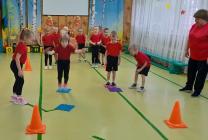 С замечательной бодрящей гимнастики с родителями началось утро на ул. Школьной. Дети средней группы "Семицветик" с инструктором по физической культуре Ильиной Галиной Васильевной отправились в "Путешествие в страну Здоровья". В группе "Малинка" (воспитатель Горячева А.А.) прошла веселая игровая программа с мячами. Воспитанники группы "Рябинка" побывали в "Школе юного туриста", где закрепили правила поведения в походе и знания о компасе.