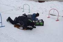 В подготовительной группе "Затейники" участниками были дети, родители и дедушки, которые под торжественную музыку прошли строем и выстроились в команды. В роли командующего выступила инструктор по физической культуре Андреева Мария Ивановна. Игра была построена в форме эстафеты по этапам: «Разведчики», «Меткий стрелок», «Пройди через болото», «Полоса препятствий», «Перенеси бойца», "Минное поле". У каждой команды маршрут был свой, но завершиться он должен в «штабе», именно туда