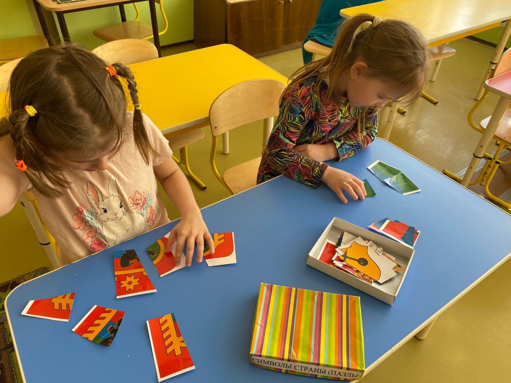 Воспитанники подготовительной группы "Затейники" (воспитатель Богданова А.А.) узнали о том, как республика Крым и Россия вновь стали одной страной, повторили символы нашей страны, собирали пазлы - герб города.