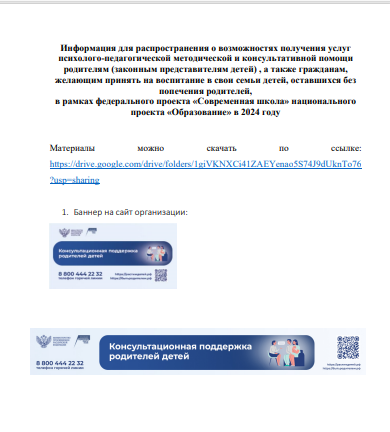 Для участия во Всероссийской неделе необходимо выбрать дату, интересующую тематику и мероприятие, а также зарегистрироваться (для каждого мероприятия индивидуальная регистрация). Принять участие можно в неограниченном количестве мероприятий. В период проведения Всероссийской недели родители также имеют возможность бесплатно получить адресную психолого-педагогическую, методическую помощь. Вместе с тем с учетом острой социальной значимости и востребованности Мероприятия, просим обеспечить информационную поддержку его реализации. Прилагаем материалы для распространения в региональных средствах массовой информации; на официальных ресурсах в телекоммуникационной сети «Интернет» (сайты, страницы, порталы и т.д.); в официальных сообществах в социальных сетях. Указанные материалы также размещены по ссылке: https://drive.google.com/drive/folders/1giVKNXCi41ZAEYenao5S74J9dUknTo76?usp=s haring.
