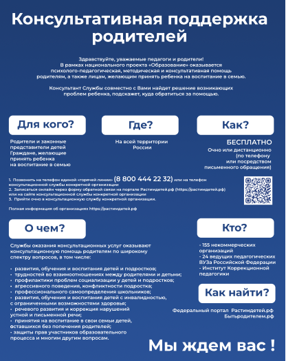 С16 сентября по 22 сентября в России проводится Всероссийская неделя родительской компетентности в рамках реализации мероприятия по оказанию услуг психолого-педагогической, методической и консультационной помощи родителям (законным представителям) детей, а также гражданам, желающим принять на воспитание в свои семьи детей, оставшихся без попечения родителей, федерального проекта «Современная школа» национального проекта «Образование».