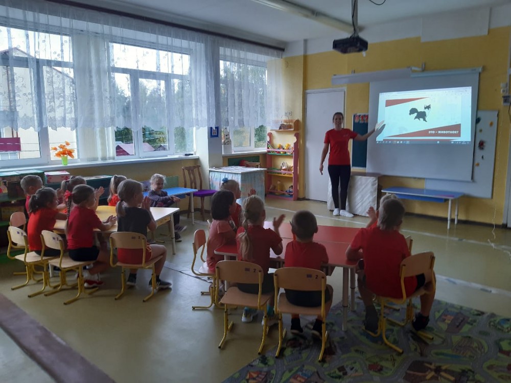 16 сентября воспитанники подготовительной группы "Затейники" стали участниками ежегодного Всероссийского урока "Эколят-молодых защитников природы" (педагоги - Андреева М.И., Лазаренко Е.А., Плинкоева Н.Н.) по теме "Самые, самые!". В самом начале дети познакомились с животными-рекордсменами, узнали самое крупное животное на планете, отгадывали загадки о животных, показали парад чемпионов, а затем приняли участие в спортивном развлечении "Зов джунглей!". Разделились на две команды - "Хищники" и "Травоядные". После зажигательной разминки соревновались в различных веселых конкурсах: "В поисках пищи", "Перейди через болото", "Змеи на прогулке", "Битва сильнейших" и других.