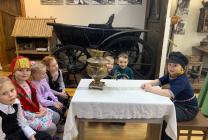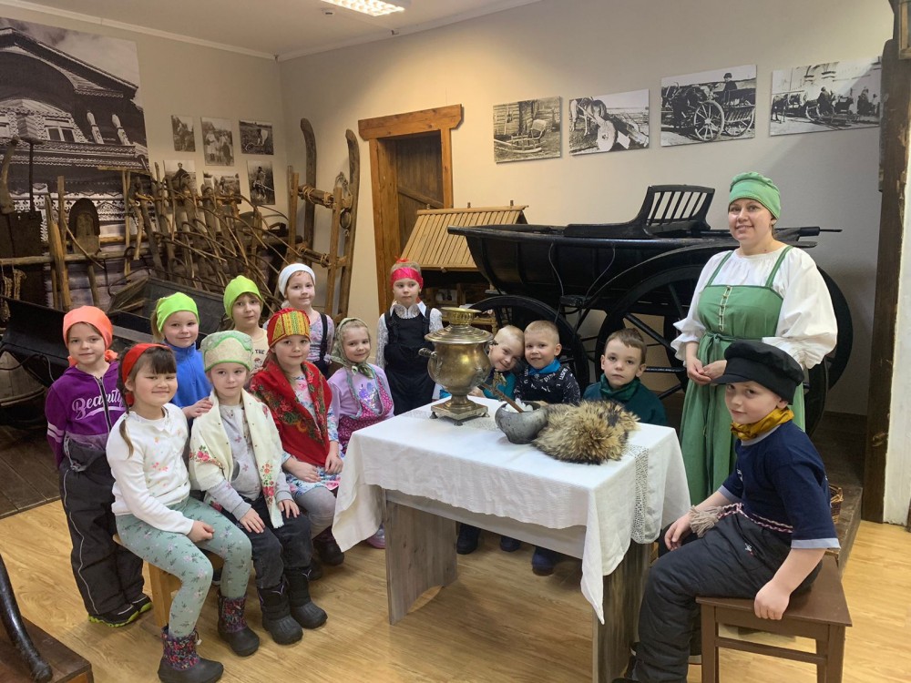 29 февраля две подготовительные группы - "Рябинка" (воспитатели Зайцева Елена Ивановна, Богданова Алина Александровна, помощник воспитателя Рямякова Ольга Михайловна) и "Затейники" (воспитатели Корнышева Татьяна Владимировна, Богданова Алина Александровна, помощник воспитателя Федорова Оксана Аркадьевна) побывали в Олонецком национальном музее на заключительном занятии по музейно-образовательной программе "Дом и что в нем", которое называлось «Утро в карельской семье». В процессе интерактивной игры дети узнали, как в старину начиналось утро в карельской семье, выбирали членов семьи. У каждого члена семьи были свои обязанности: пока отец с матерью ездили на ярмарку, сыновья ходили на рыбалку и охоту,а дочери помогали им, невестки пряли, убирали в доме. Все были заняты делом: кто варил, кто баню топил. Так вот жили дружно, во всем друг другу помогали. Благодаря музейно-образовательной программе дети не только знакомятся с предметами старины, народными традициями, обрядами, но и понимают значимость семьи и взаимоотношений внутри нее для каждого человека.